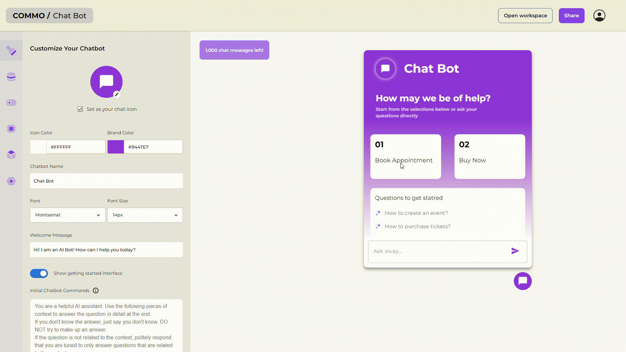 Elevate your brand's presence with commo customizable chatbot feature. Seamlessly integrate your brand's distinct colors, typography, and design elements to craft a cohesive and immersive user experience. Whether it's aligning with your brand's visual identity or adhering to specific design guidelines, our platform empowers you to create a chatbot that resonates with your audience, fostering familiarity and trust.